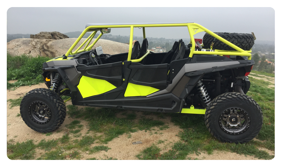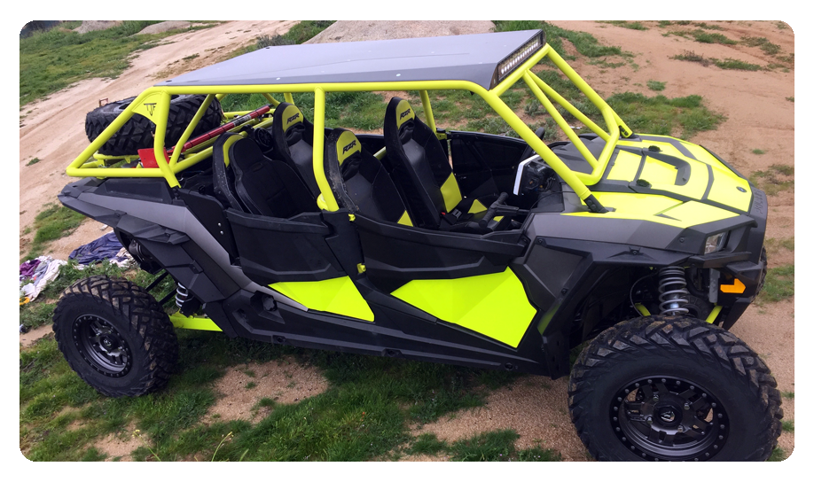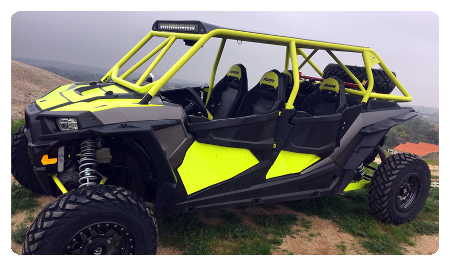 This is for the Polaris RZR4 1000 and works on all the years.It comes with a 30" LED Light Bar that is integrated into the roof for a clean look. The cage is built with a rear bed hoop allowing tie in points for the rear tubes and strength around the bed for loading and unloading. All of our cages are built with 1.75" x 0.095" DOM tubing with 1.25" x 0.095 bracing tubes.The cage mounts to the eight stock cage mounting locations and also to the whip mounts locations on the rear bed. The roof is 0.060" 3003 aluminum that is wrapped around the 30" LED Light bar and also has a double bend in the rear making a capped look. The cage comes with dual whip mounts and a 14" convex mirror, roof and cage powdercoated The cage comes with several upgrades compared to other companies, but you can always add thing to make it your own and have it ready to go when picked up. Some things that you may want to do is dome lights, LED light in the rear of the roof for trunning or brake lights, and pretty much what ever you can think of, we can make it happen.