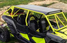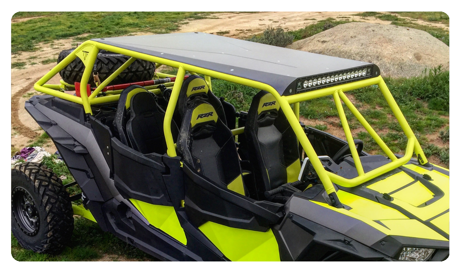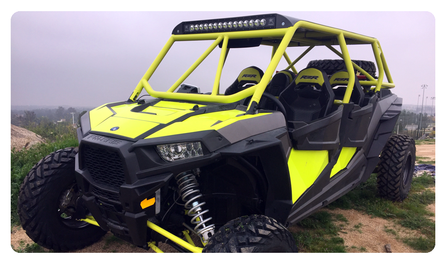 This is for the Polaris RZR4 1000 and works on all the years.It comes with a 30" LED Light Bar that is integrated into the roof for a clean look. The cage is built with a rear bed hoop allowing tie in points for the rear tubes and strength around the bed for loading and unloading. All of our cages are built with 1.75" x 0.095" DOM tubing with 1.25" x 0.095 bracing tubes.The cage mounts to the eight stock cage mounting locations and also to the whip mounts locations on the rear bed. The roof is 0.060" 3003 aluminum that is wrapped around the 30" LED Light bar and also has a double bend in the rear making a capped look. The cage comes with dual whip mounts and a 14" convex mirror, roof and cage powdercoated The cage comes with several upgrades compared to other companies, but you can always add thing to make it your own and have it ready to go when picked up. Some things that you may want to do is dome lights, LED light in the rear of the roof for trunning or brake lights, and pretty much what ever you can think of, we can make it happen.